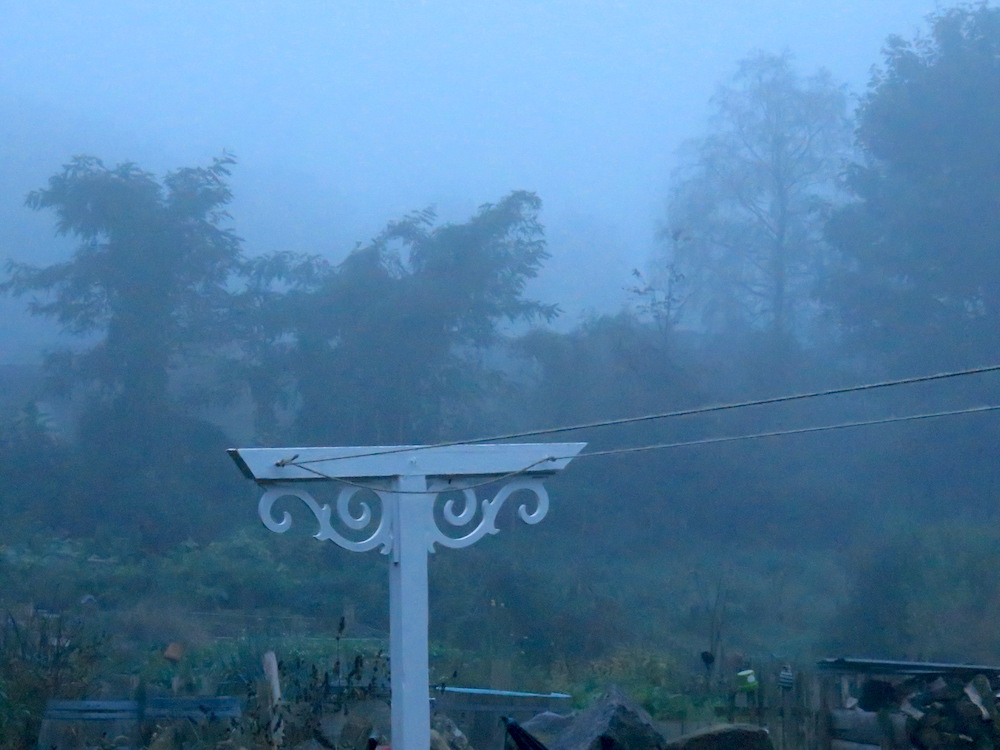 Bislang habe ich den Eindruck, dass der ständige Regen hier oben den Flugdreck wegspült aber nachgedacht habe ich über den Punkt auch schon. Bei der Wäschespinne habe ich mir immer schwarzes Waschwasser gehabt nach dem Putzen. Börks. Diese Wäscheleine ist ja abnehmbar, damit wir den Hofplatz frei machen können für Trecker und LKW, ich werde sie wohl mal in einem Eimer auswaschen sobald es wieder schöner ist und mir das Ergebnis mal ansehen. Moos hat sie zumindest noch nicht angesetzt, aber über kurz oder lang setzt bei diesem Klima alles Moos an.