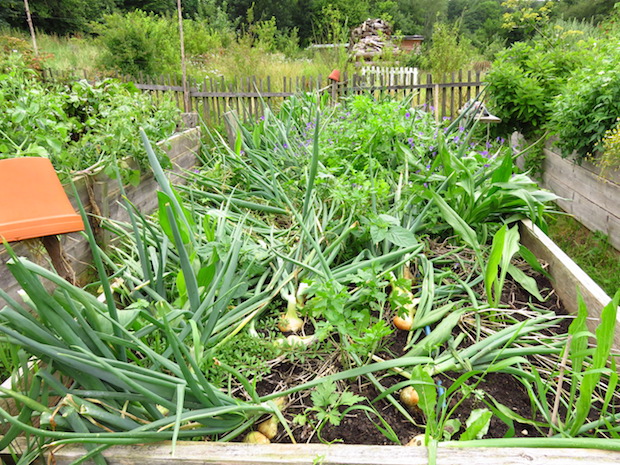 Meine Zwiebelernte habe ich hier auf dem Blog gezeigt, es müssen insgesamt gute 50kg gewesen sein und wir haben immer noch gut davon. Nachschau hier. Etwa 1/3 bis 1/2 davon entfällt auf dieses Beet. Und auch die Wurzelpetersilie hat sich zum ersten Mal ganz prächtig in dieser Mischkultur entwickelt, die Rüben waren so groß, wie andernorts Pastinaken und sehr, sehr schmackhaft. Nachschau hier.