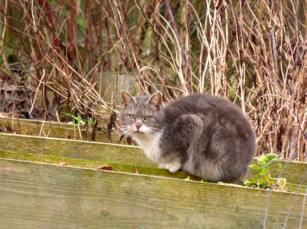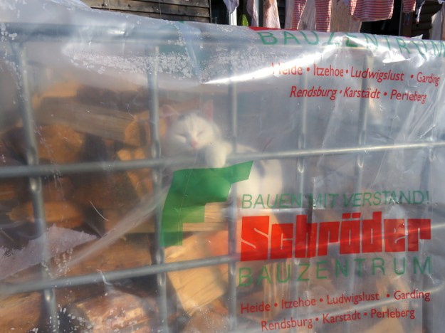 Die ersten wärmenden Sonnenstrahlen führen bei Katzen unweigerlich zum lasziven Rumlungern und Dösen. Heinzi sucht sich wie gehabt Gewächshäuser dafür aus – oder das, was er dafür hält – während Fremdkatze auf dem schmalen Grad des Hochbeets balanciert und die Mausepopulation überwacht. Fremdkatze ist offenbar mit Heinzi zusammen gezogen. Sie schlafen allerdings nicht im Windfang im Katzenkobel sondern auswärts, das sieht Mama natürlich nicht so gerne. Fremdkatze beherrscht das Hypnotisieren durch die Küchentür hindurch perfekt, beharrlich lungernd sitzt sie auf der Fußmatte, bis ich mich erbarme die armen Tiere vor dem Hungertod zu retten. Allerdings ist sie immer noch nicht so weit, dass sie sich anfassen lässt. Langsam wird es Zeit, sie einzufangen und beim Tierarzt vorzustellen, notfalls mit einer Falle. Nicht, dass wir im Mai den ganzen Hof voller Katzenbabies haben, die uns nicht gehören.
