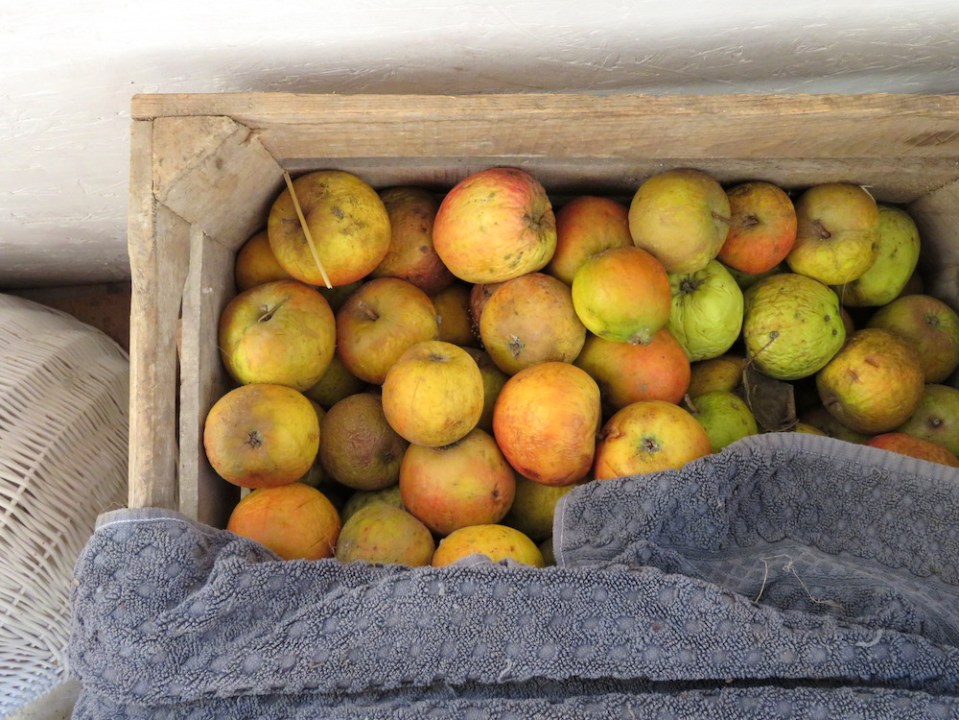 Lageräpfel in der Holzkiste Ende März