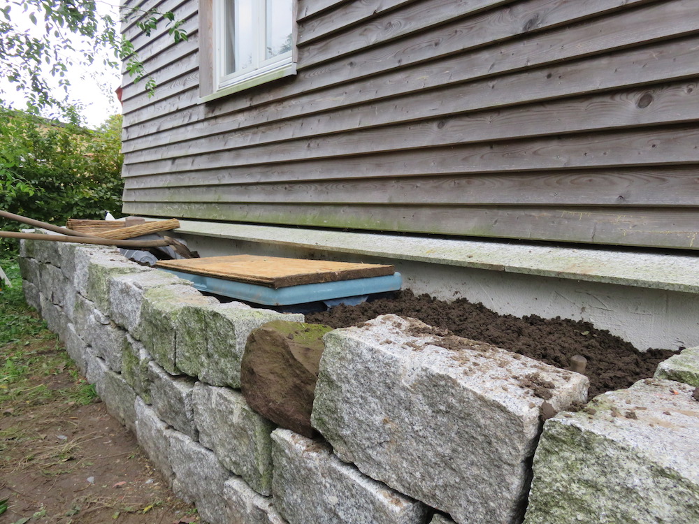 Viel Platz für Isolierung blieb nicht. Der Sockel des Hauses ist allerdings schon mit Jackodur beklebt.