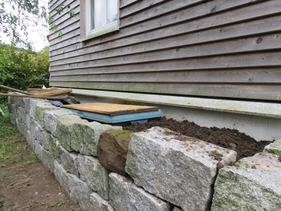 Sommers kann der hässliche Plastikdeckel mit einer Holtplatte abgedeckt werden und als Abstellfläche fungieren, winters wird hier Stroh aufgelegt und ein Gefälle gebaut, damit das viele Wasser ablaufen kann.