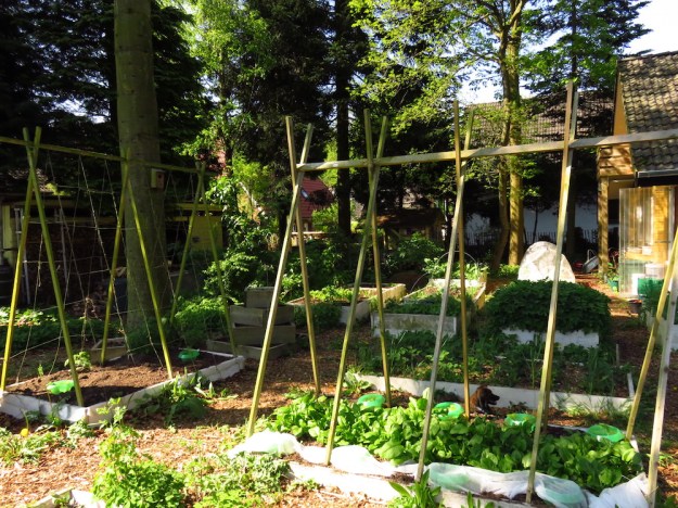 Dieser Garten nährt und ernährt trotz dem Schatten, den die urigen alten Bäume werfen und trotzdem sie den Boden mit ihren Wurzeln vereinnahmen. Selbstversorgergärten können die Welternährung sicherstellen und es gibt genug Stimmen die sagen, dass NUR Selbstversorgergärten und kleinteilige Landwirtschaft es langfristig vermögen. Die UN zum Beispiel.