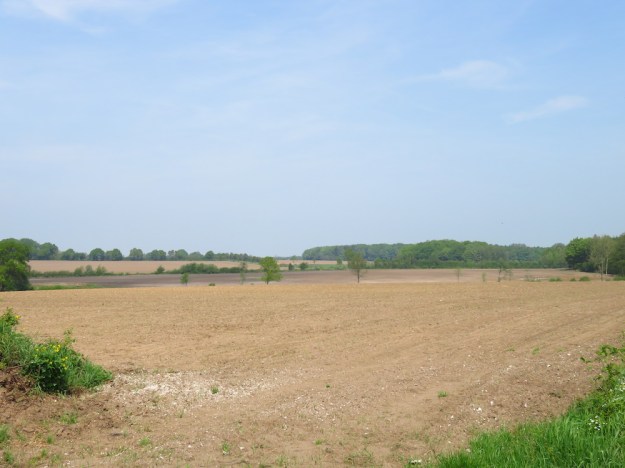 Ausgelaugter, konventionell bewirtschafteter Acker mit frisch gestutztem Knick