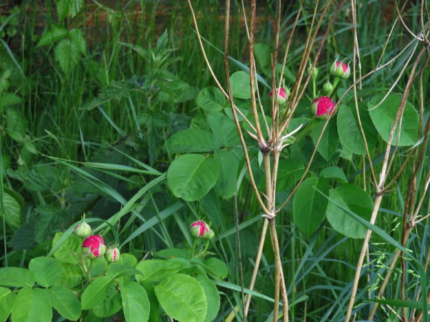Es herrscht eine Üppigkeit und Fülle, die man sich noch im März nicht vorstellen konnte – oder geht es nur mir so: im Winter und Frühjahr kommt mir der Garten so karg und leer vor, als würden überall freie Plätze darauf warten, mit Bäumen und Sträuchern gefüllt zu werden und im Sommer dann weiß ich beim besten Willen nicht mehr, wo ich leere Plätze entdecken konnte.