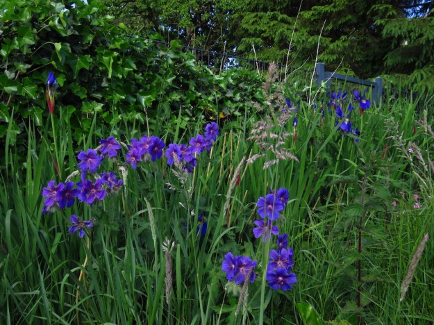 Ich nehme euch schnell mit auf einen Gartenrundgang aus Anfang Juni. Wir haben anscheinend kaum Frühblüher, aber so langsam geht es hier nun auch los mit überbordender Blütenfülle. Derzeit ist augenscheinlich blau und blau-violett dran: Salbei, Storchschnabel, Iris, Bergflockenblumen, wilde Stiefmütterchen, Thymian, Rosmarin und die Kornblumen sind auch bald dran.