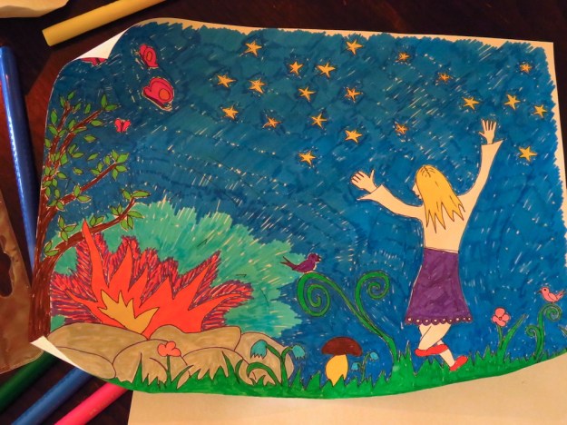 Die Bilder aus deinem unmittelbaren Umfeld sind dafür wieder so bunt und froh und sinnstiftend, dass es eine Freude macht. Ich weiß ja, dass es der Welt nicht hilft, wenn man ihr den Rücken kehrt und in Frieden sein eigenes Süppchen kocht und seine eigenen Blümchen gießt – Biedermeier 2.0? – aber manchmal ist es wohl die einzige Möglichkeit, sich nicht aufreiben zu lassen vor lauter Verzweiflung. Und dann, finde ich, hat es auch seine Berechtigung. Wie die Hebamme immer so schön gesagt hat: Das Kind hat nichts davon, wenn es der Mutter schlecht geht vor lauter Aufopferung. Und der Welt geht es auch nicht besser, wenn die, die sie retten wollen, kollabieren.