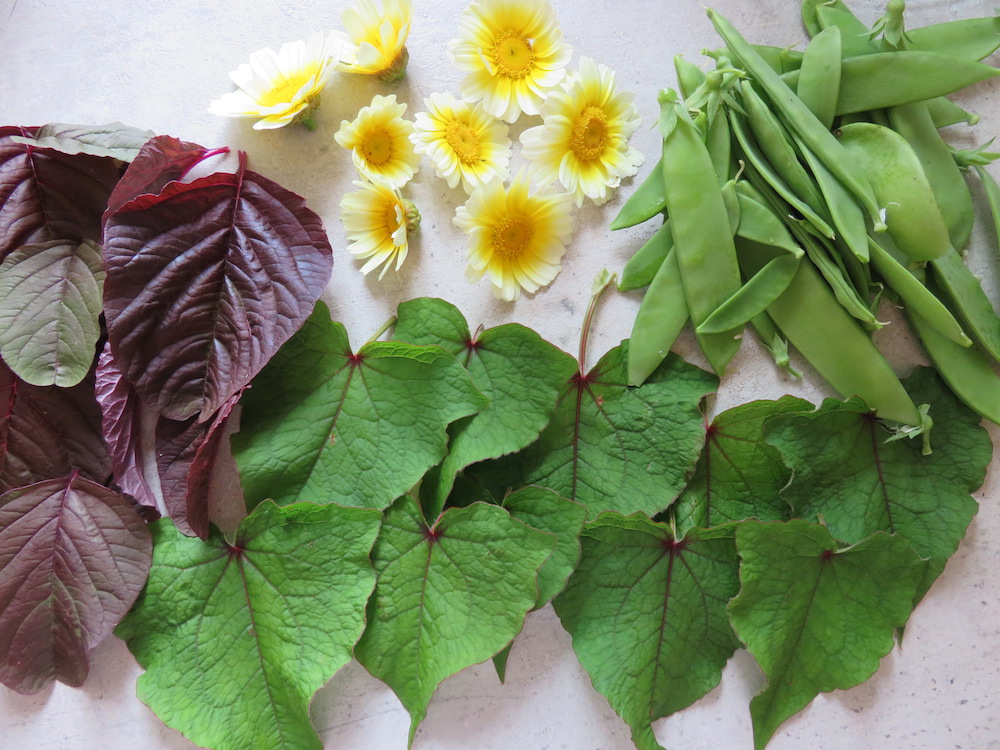 2 Gedanken zu „Bratreis mit Sommergemüse: Roter Meier, Karotte, Zuckerschote, Speise-Chrysantheme und Stauden-Buchweizen