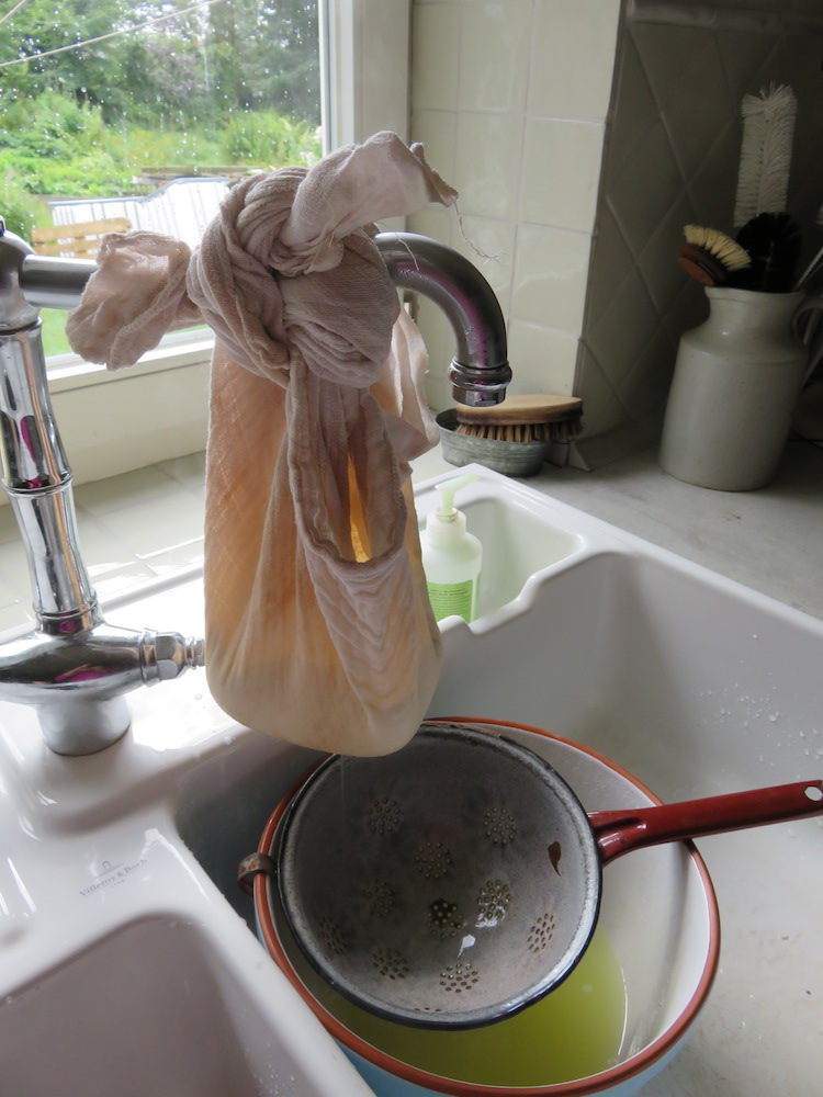 Wer, so wie ich, erst nachmittags mit den Vorbereitungen anfängt, presst die Flüssigkeit dann vielleicht lieber manuell ab. Im Ergebnis erhält man so schätzungsweise 150-200g Ricotta-Ersatz.
