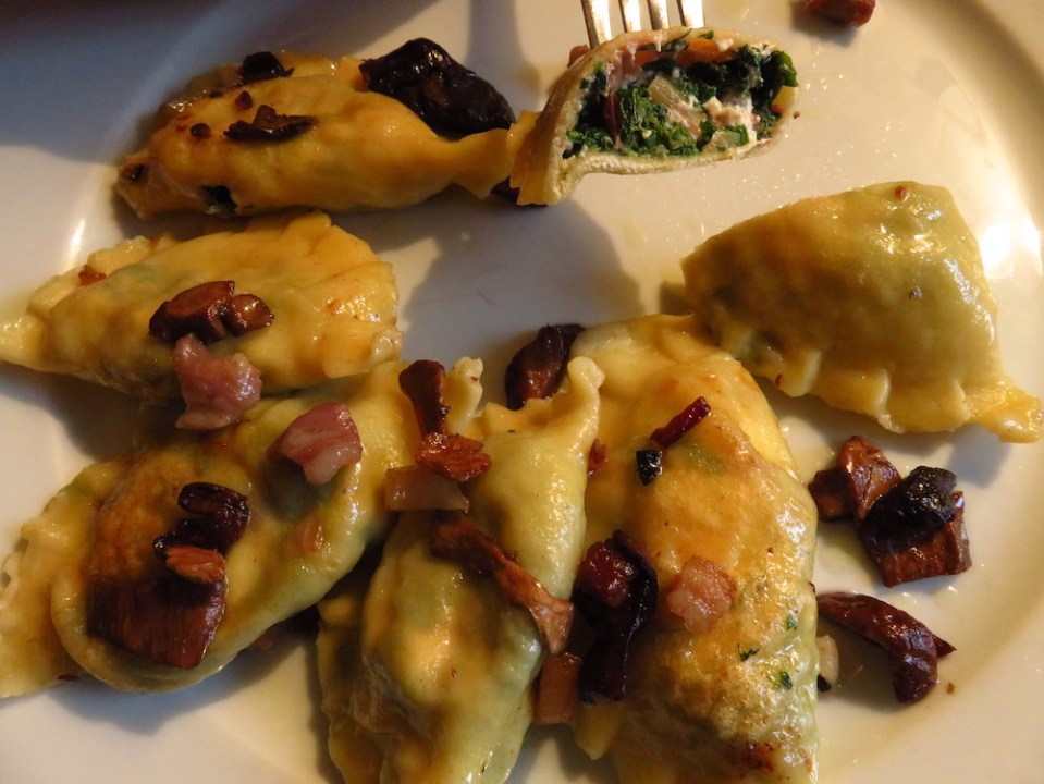 Published 29. Juli 2017 at 1000 × 750 in Mit Mangold und Ricotta gefüllte Teigtaschen in Steinpilz-Speck-Butter.