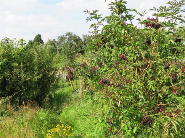 Mein früher, überreich tragender Holunder ist bereits abgeerntet. Anfang August reiften die Dolden so schnell, dass ich zusehen musste, den Vögeln noch einige Beeren zu entreissen. Dieses Jahr habe ich nur Saft daraus gemacht und einen Vorrat für die winterliche Erkältungszeit angelegt. Die Marmeladen aus wilden Früchten mit Holunder (z.B. hier und hier) haben mir auch ausnehmend gut gefallen und vielleicht stelle ich noch welche aus später reifenden Sorten her.