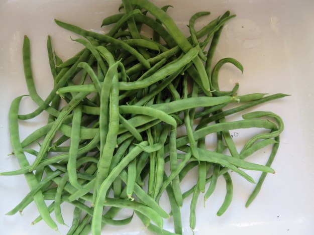 Als Bohnen empfehle ich eine Buschbohnensorte oder wirklich jung geerntete Stangenbohnen.