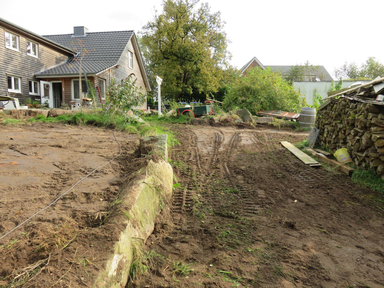 Selbst für hiesige Verhältnisse war 2017 ein extrem nasses Jahr, vielerorts steht der Mais rottend auf den Äckern weil diese nicht befahrbar sind, die Mittelholsteinischen Apfeltage bei Schwerdtfegers mussten aufgrund von Wetter und aufgeweichtem Boden dieses Jahr ausfallen und unser Grundstück ist dieses Mal bereits ab dem Hauptweg eine Schlickbahn.