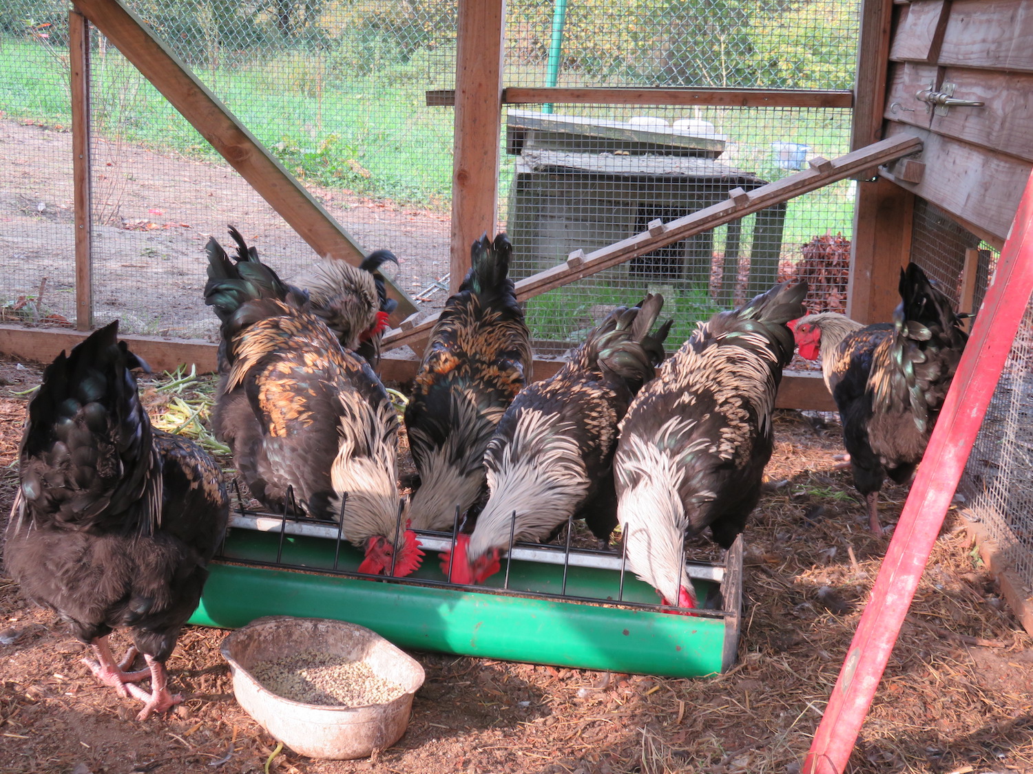 Zusätzlich haben wir vor einiger Zeit noch Zuwachs von Marans-Küken bekommen – ich weiß nicht, ob ich es erwähnte. Nun erwarte ich von den Hennen bald Legereife und die Hähne sind fertig ‚gemästet‘ und gehen schon bald zum Schlachter.