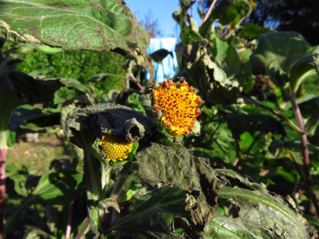 Und da es hier den ganzen Oktober lang frostfrei war, habe ich die Süßkartoffeln erst spät geerntet und der Yacon kam sogar ausdauernd zur Blüte.