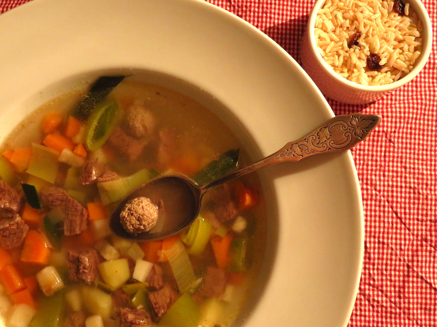 Frische Suppe mit Rindfleisch UND Hackbällchen