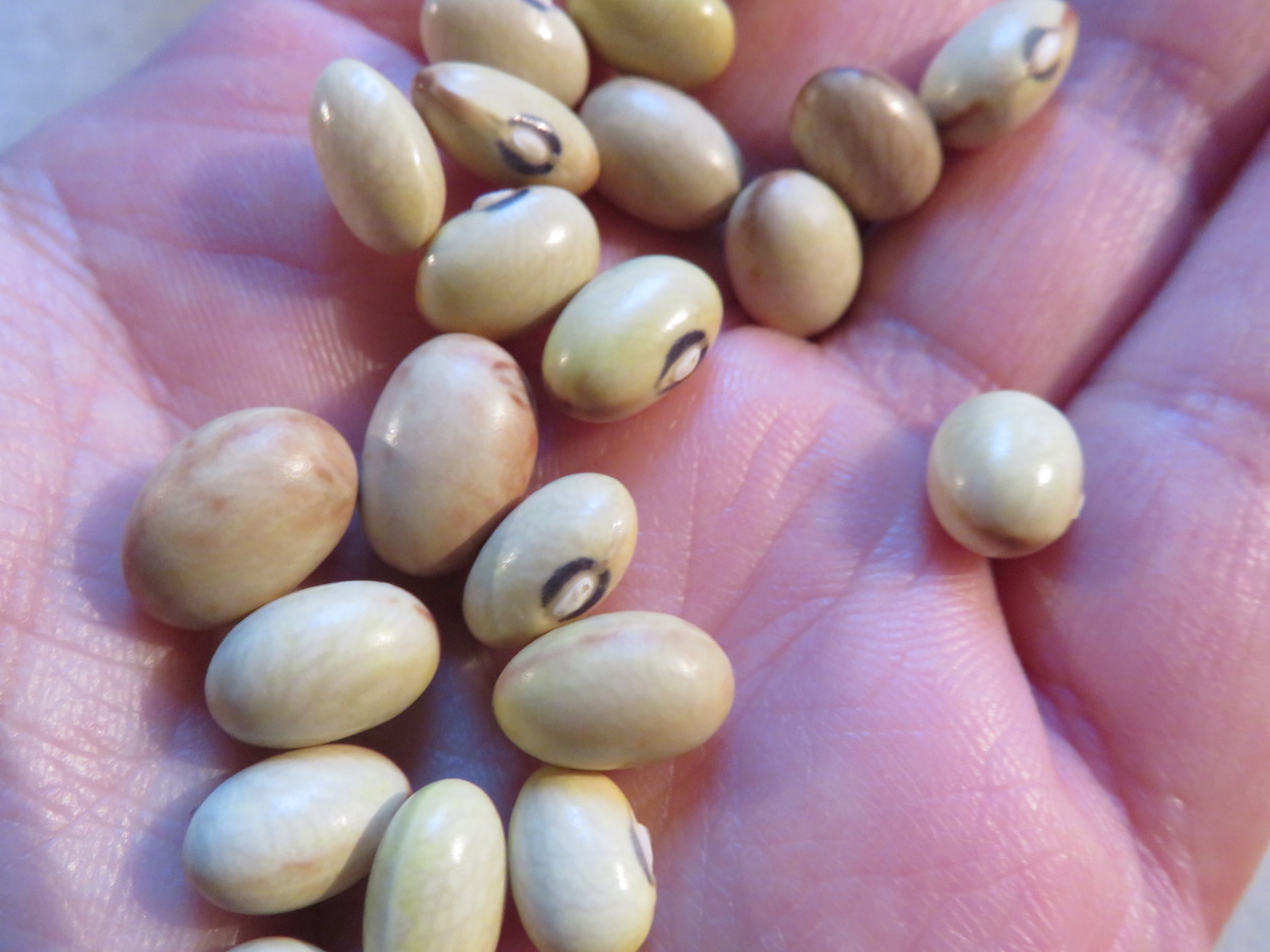 ‚Hutterite Soup‘ eine fast weiße Suppenbohne der Hutterer. Mitgenommen über den großen Teich und nun wieder zurückgekommen.