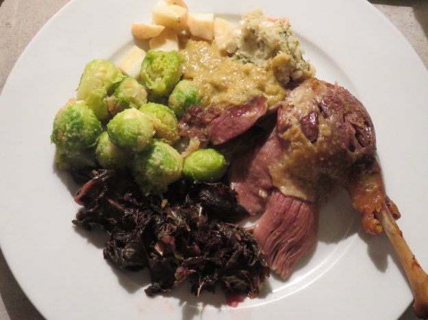 Kulinarisch waren Wintergerichte wie Dithmarscher geschmorter Kohltopf, besagte Fliederbeerensuppe, Grünkohl, Gumbo mit eigenem Marans-Hahn und selbst gemachter Schokoladenpudding mit Chocolate Nibs dran. Ausserdem war Schlachtfest und der leider einzige Moschuskürbis wurde in viele Einzelportionen zerteilt, zum Teil verkocht und verkostet: deliziös! Gleiches gilt für die Yacon, die wir dieses Jahr erstmalig als ‚Morado‚ im Anbau hatten und die seitdem regelmässig in dem Obstsalat des Gatten verbaut wird.