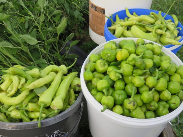 Bei den Mengen an Paprika, die man so aus einem durchschnittlichen Garten – vor allem Gewächshaus! – holen kann, ist man nicht nur selber gut mit Gulaschgewürz versorgt, sondern kann sich noch das ein oder andere Glas als Gastgeschenk abzweigen.