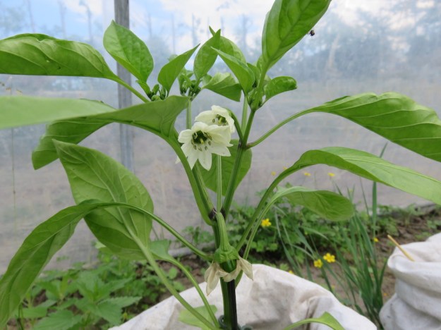 So ein Erdsack ist ja richtig praktisch und das ist ja enorm, wie schnell die Paprika da gewachsen sind, aber das liegt wohl am Tunnel, draußen dauert es ewig!