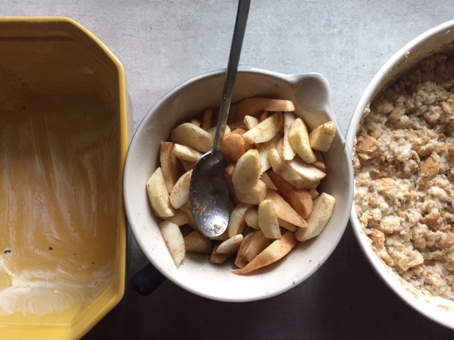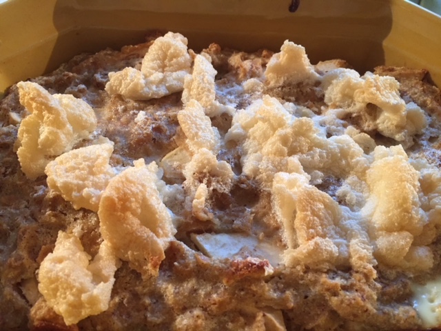 Dieser Apfelauflauf schmeckt warm und kalt und man kann ihn prima am nächsten Tag aufschneiden, in Butter anbraten und mit einer Kugel Vanilleeis servieren.