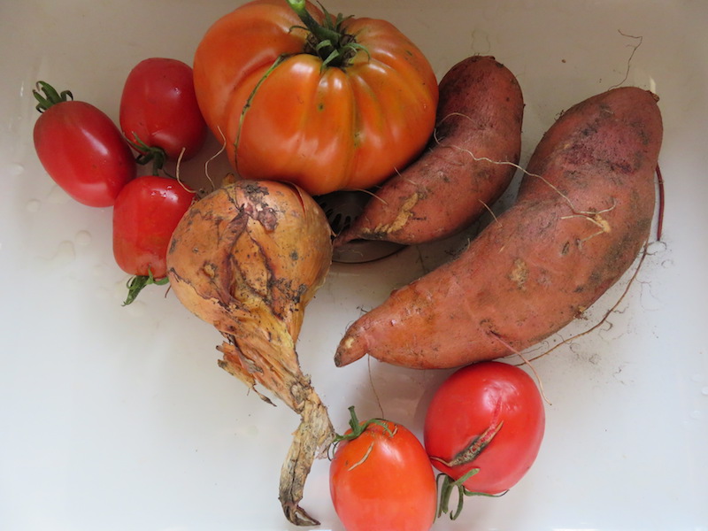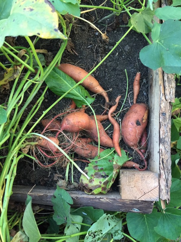 Dieses Jahr habe ich wohlweisslich mehr Süßkartoffeln angebaut denn je. Immerhin gilt es im Laufe des Herbstes und Winters nicht nur uns erwachsene Esser mit guter Nahrung zu versorgen, sondern auch den jüngsten Sproß, der Essanfänger ist und Bataten liebt.