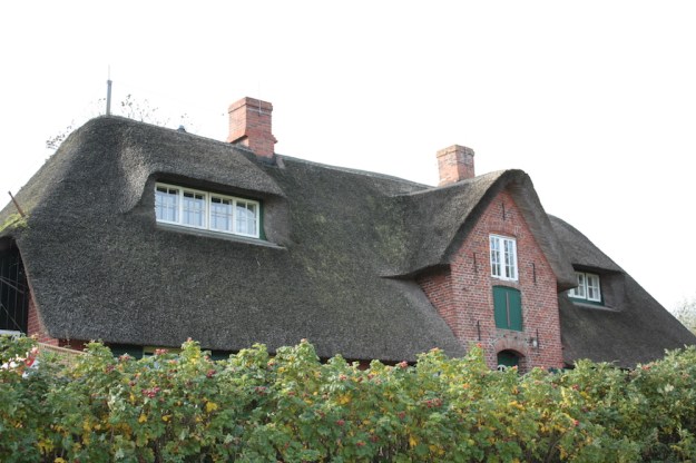 Ich habe eine neue Hagebuttenmarmelade entworfen und sie ist sehr gut. Zwar habe ich noch nie eine schlechte Hagebuttenmarmelade gegessen, aber diese ist verbessert. Und sie weckt Erinnerungen an Zeiten des Schweigens, der schroffen Landschaften und des tösenden Windes im Herbst auf einer Nordseeinsel. Herrlich. Friesenwälle, Apfelrosen überall, Reethäuser, Möwen, gedämpfte Farben und stundenlange Märsche durch die Dünen ohne ein Wort.