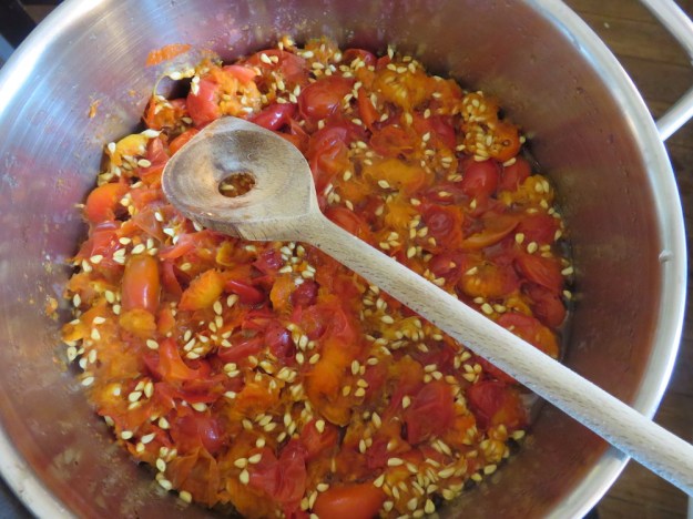 Mit der Flotten Lotte habe ich das Durchdrehen auch schon versucht. Klappt nicht. Nur mit dem Sieb hab ich es hinbekommen. Die Kerne habe ich gemahlen und mische die unters Müsli.