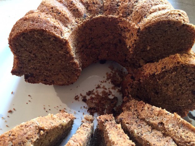 Ich habe diesen Kuchen mittlerweile mit Honigkuchengewürz, mit Lebkuchengewürz, mit Kaffee-Schokolade und mit Zartbitterschokolade gebacken, mit einem hohen Anteil geriebener Mandeln und mit gehackten Mandeln – der Kuchen ist wandlungsfähig, verzeiht viel und ist dabei 100% idiotensicher.