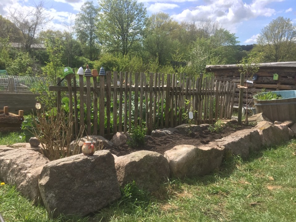 Ein neues Hochbeet eingefasst mit Fundamentsteinen
