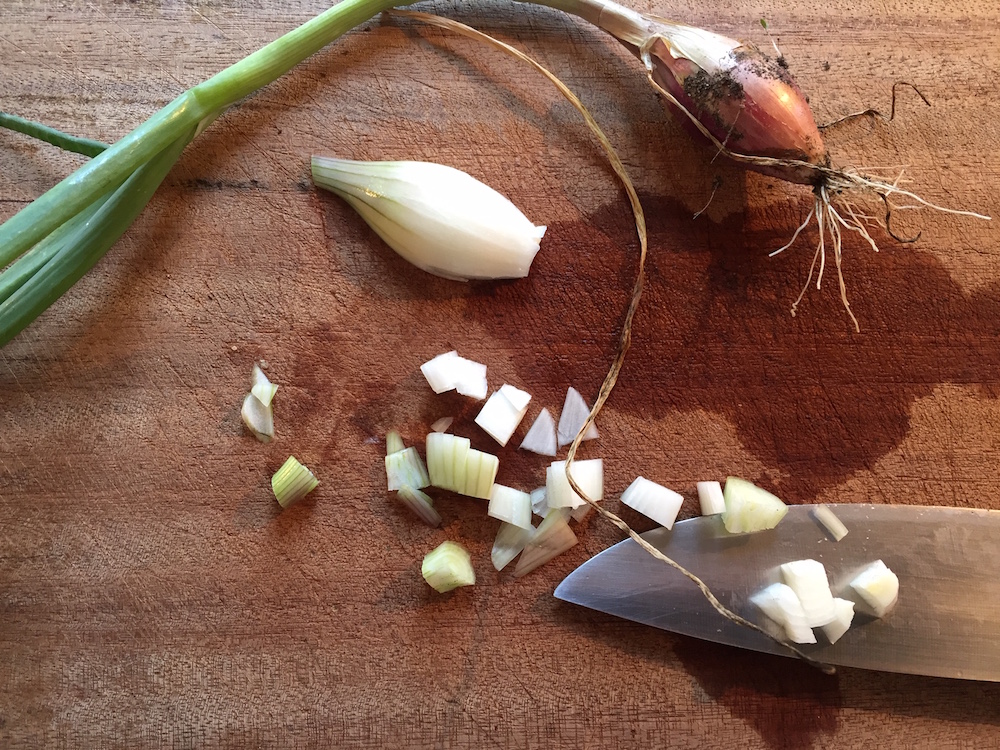 • 2 milde, rote Zwiebeln (ich finde ‚Tropea tonda rossa‘ passt sehr gut, die ‚Rossa lunga di Firenze‘, die ich ebenfalls angebaut und getestet habe ist schon fast zu süß und mild für dieses Gericht, vielleicht gibt es vergleichbare Zwiebeln im urbanen Feinschmeckermilieu zu kaufen, hier auf dem Land muss man sie selber anbauen, was ich ab Samenkorn getan habe)
