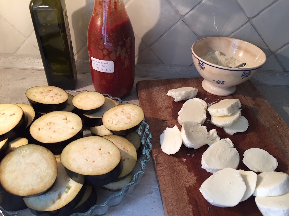 Zum Glück habe ich jede Menge leckere Auberginen-Rezepte gefunden und gesichert, dieses allerdings, hieß zunächst einmal nur ‚Auberginen-Gratin‘. Ich änderte es etwas ab, sodass es für unsere Gaumen, unsere Ernte und unsere Speisekammer passt und stellte wenig später fest, dass es nun Parmigiana di melanzane war. Ein ziemlich traditionelles, sehr reichhaltiges vegetarisches Gericht aus Süditalien.