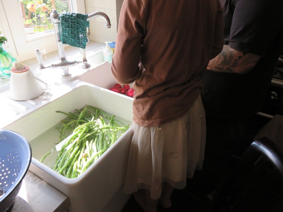 Vater und Tochter verarbeiten die Ernte