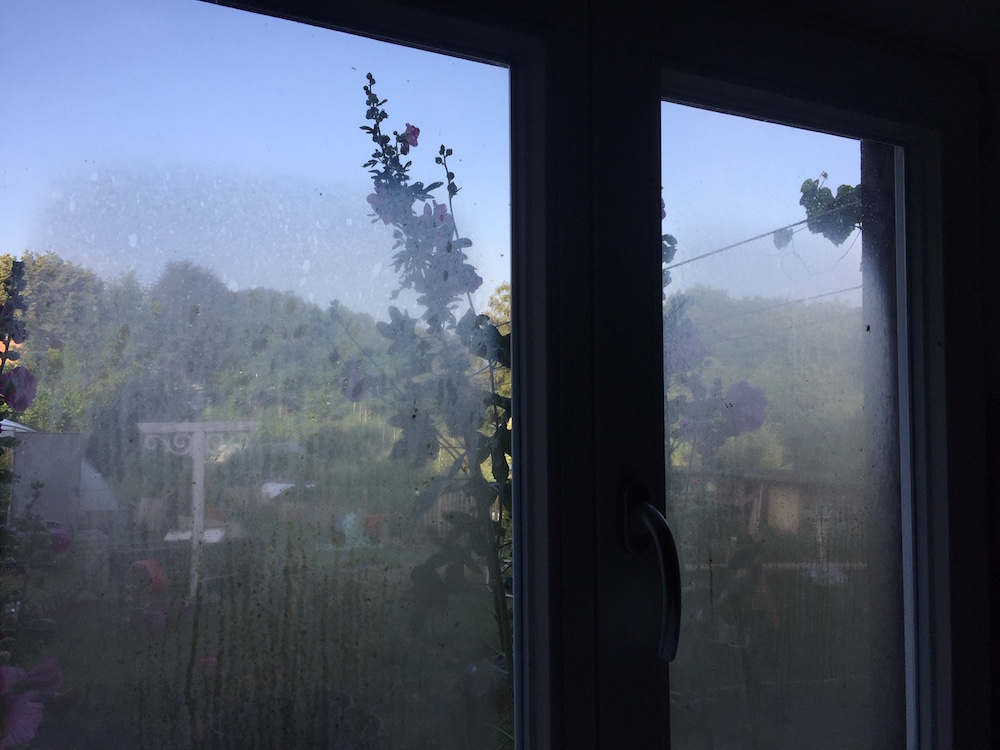 Herbstlich beschlagene Fenster