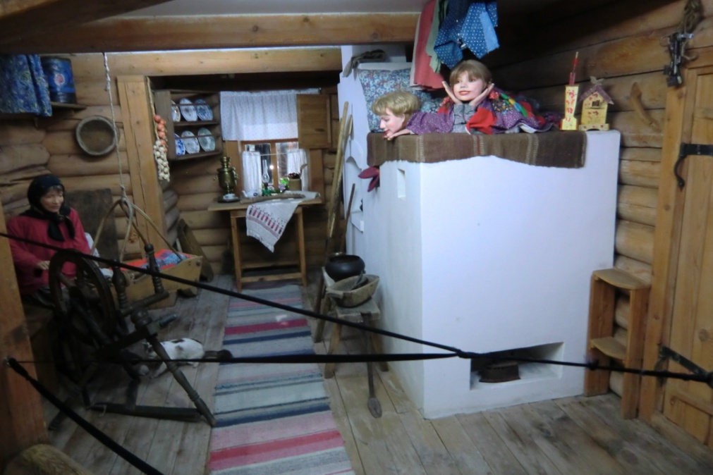 (Traditioneller sibirischer Grundofen, Foto aus dem Regionalmuseum in Krasnoyarsk)