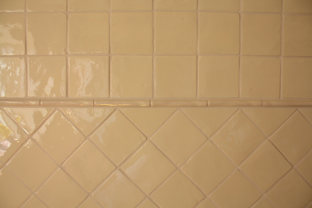 Handformfliesen diagonal verlegt mit Bordüre in der Küche