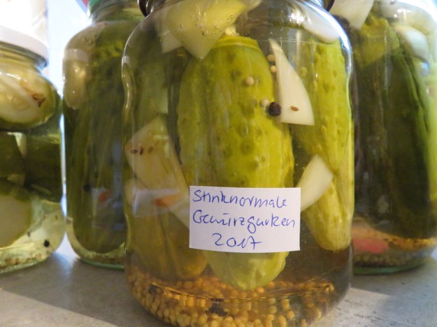 Entsprechend gab es reiche Ernte zu verarbeiten. Wir haben also reichlich Chilis gegessen, ich habe sie getrocknet und zermahlen und einige eingelegt und eingekocht.