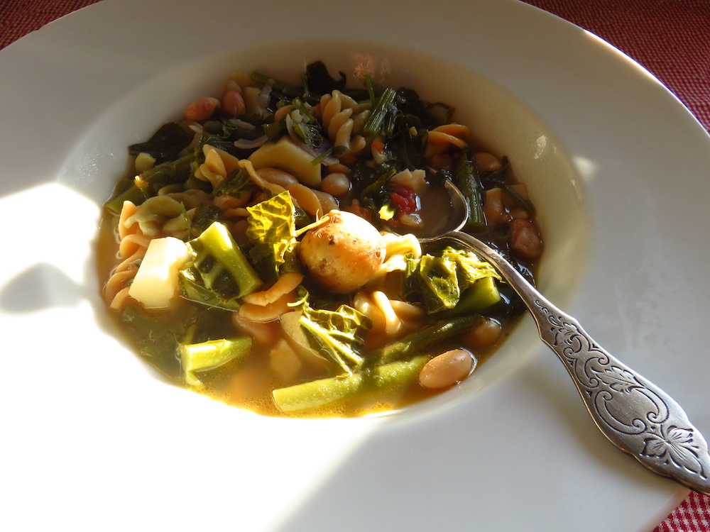 Ein gerade noch saisonales und dank Gemüsegarten absolut regionales Gericht, was die Leichtigkeit des Sommers perfekt verbindet mit der Fülle des Herbstes und an kühlen Tagen auch ordentlich einheizt: Minestrone.