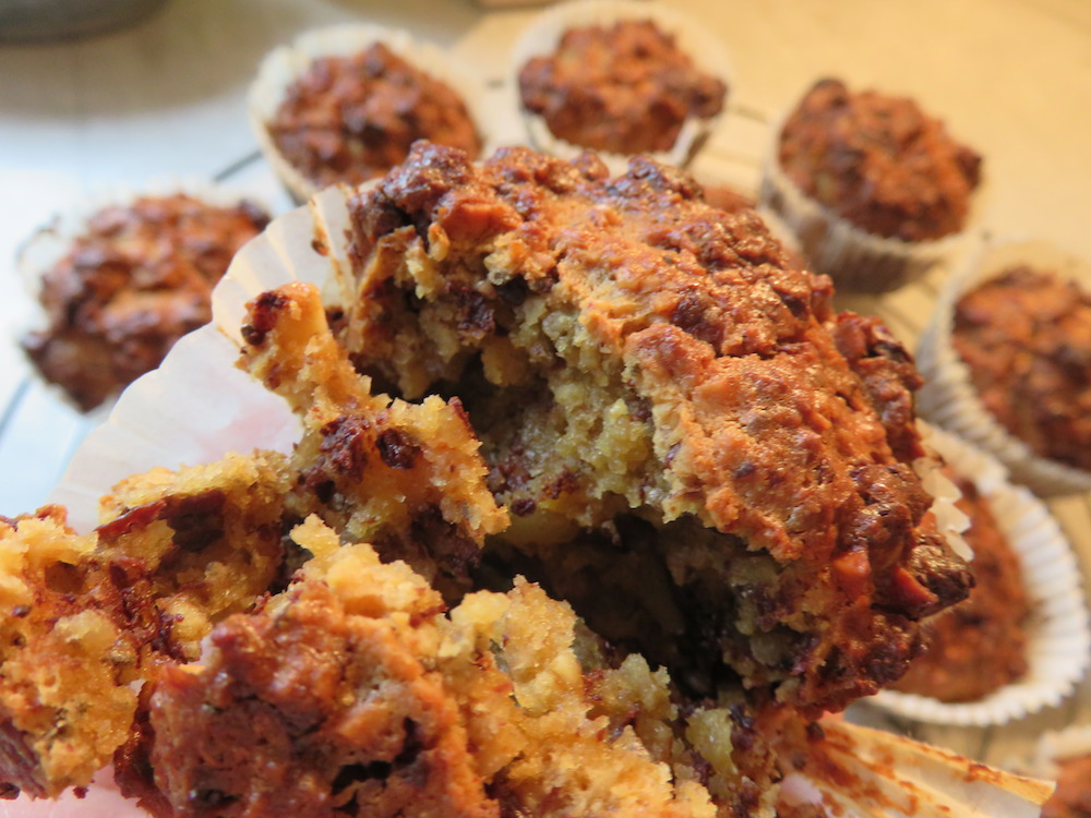 IMG_8758Diese Muffins sind das richtige, wenn jemand wie ich Appetit auf Schokolade bekommt. Vollwertig, voller guter Nüsse und Samen, die den Zähnen Widerstand leisten aber auch viel Schokolade.