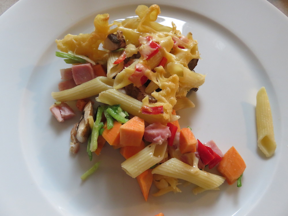 In der Zwischenzeit die Pasta kochen. Frischkäse unter das gestovte Kohlgemüse rühren und zu den Nudeln servieren.
