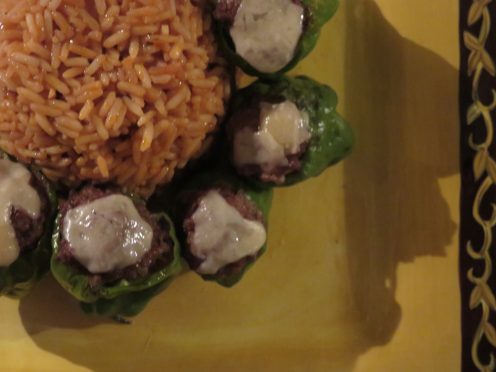 Mit Reh-Hack gefüllte Paprikas und spanischer Reis