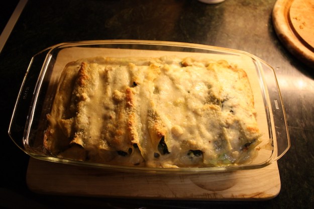 Sei es drum: die mit Mangold und selbst gemachtem Ricotta(ersatz) gefüllten Teigtaschen in Speck- und Steinpilz-Butter waren extrem lecker. Und deswegen erzähle ich hier kurz davon.